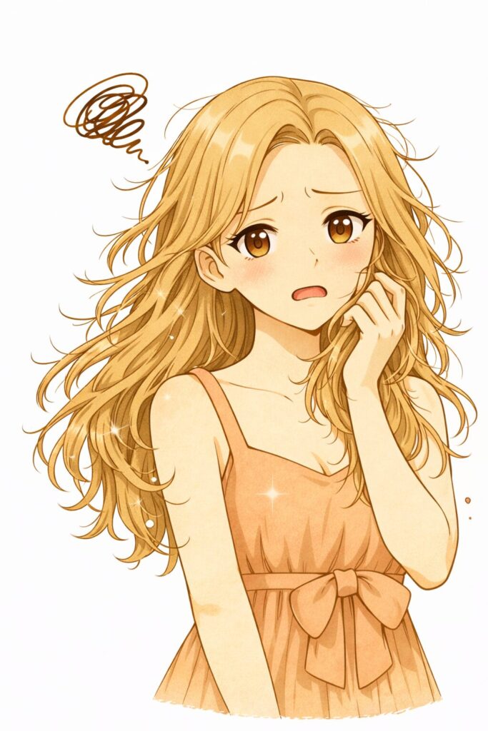 時間が経つと髪がうねりはじめて、気づけば広がっている。