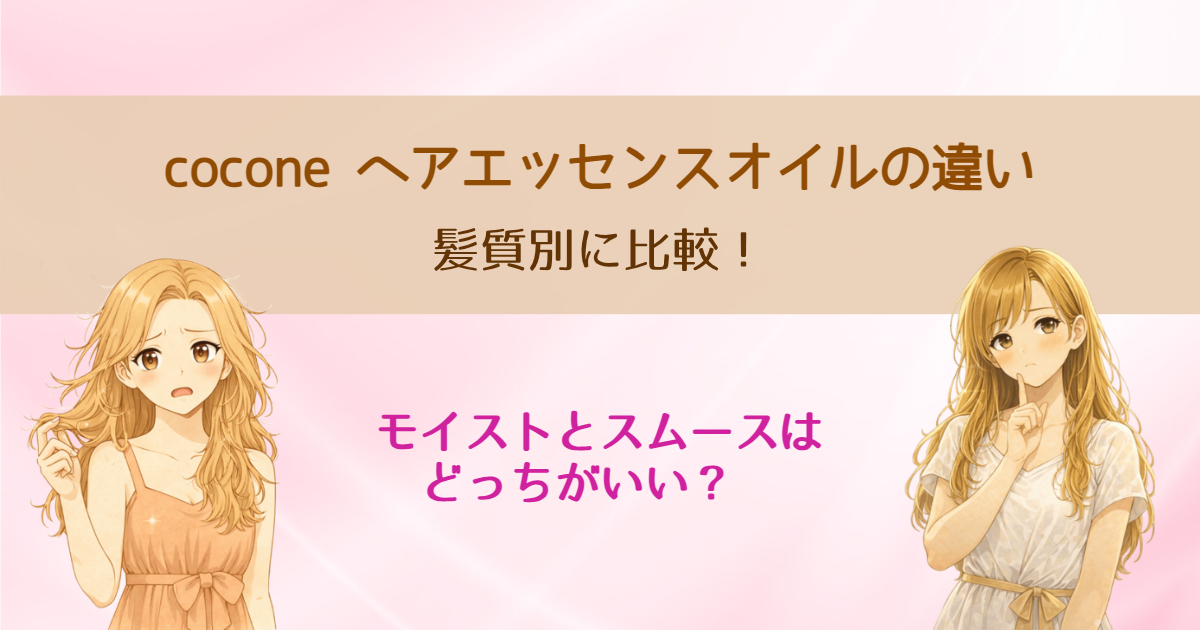 そこでこの記事では、cocone ヘアエッセンスオイルのモイストとスムースの違いを髪質別に比較しながら、それぞれどんな人に向いているのかをわかりやすくまとめました。