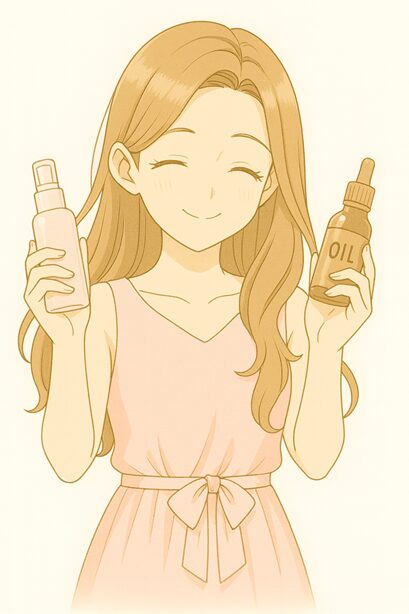 髪が少し湿っている状態だと、オイルがなじみやすく、