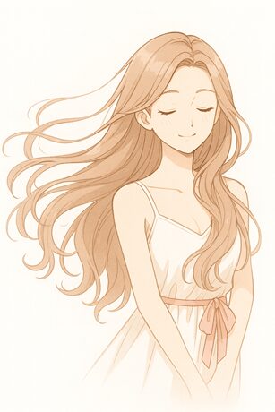 髪に当たる風がやわらかく広がる印象。