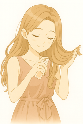 朝は、広がりやアホ毛が気になる部分にオイルを少量なじませて、質感を整える程度で十分な場合が多いでしょう。